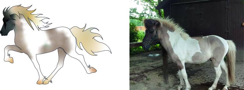 Reichen Ihnen unsere Tölter nicht aus, weil Ihr Isi einer der Unverwechselbaren ist, dann arbeiten wir ihn gerne nach Fotovorlage nach. Wir brauchen dafür ein Foto von der Seite. Der Preis umfasst die Coloration einer Seite Ihres Pferdes. Je nachdem welche Laufrichtung Sie auf Ihren Produkten wünschen, geben Sie bitte links oder rechts an und mailen uns bitte ein passendes Foto. Sie erhalten anschließend die Datei, welche Sie für alle unsere Produkte nutzen können. Zum Beispiel zum Druck auf Kleidung oder als großformatigen Druck für auf Ihren Pferdeanhänger.